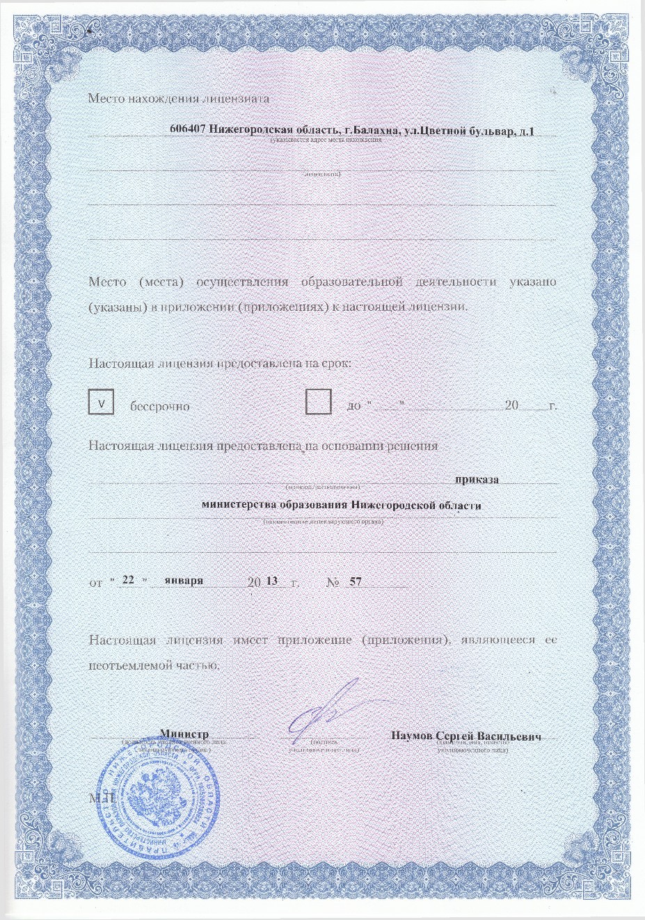 на право ведения образовательной деятельности